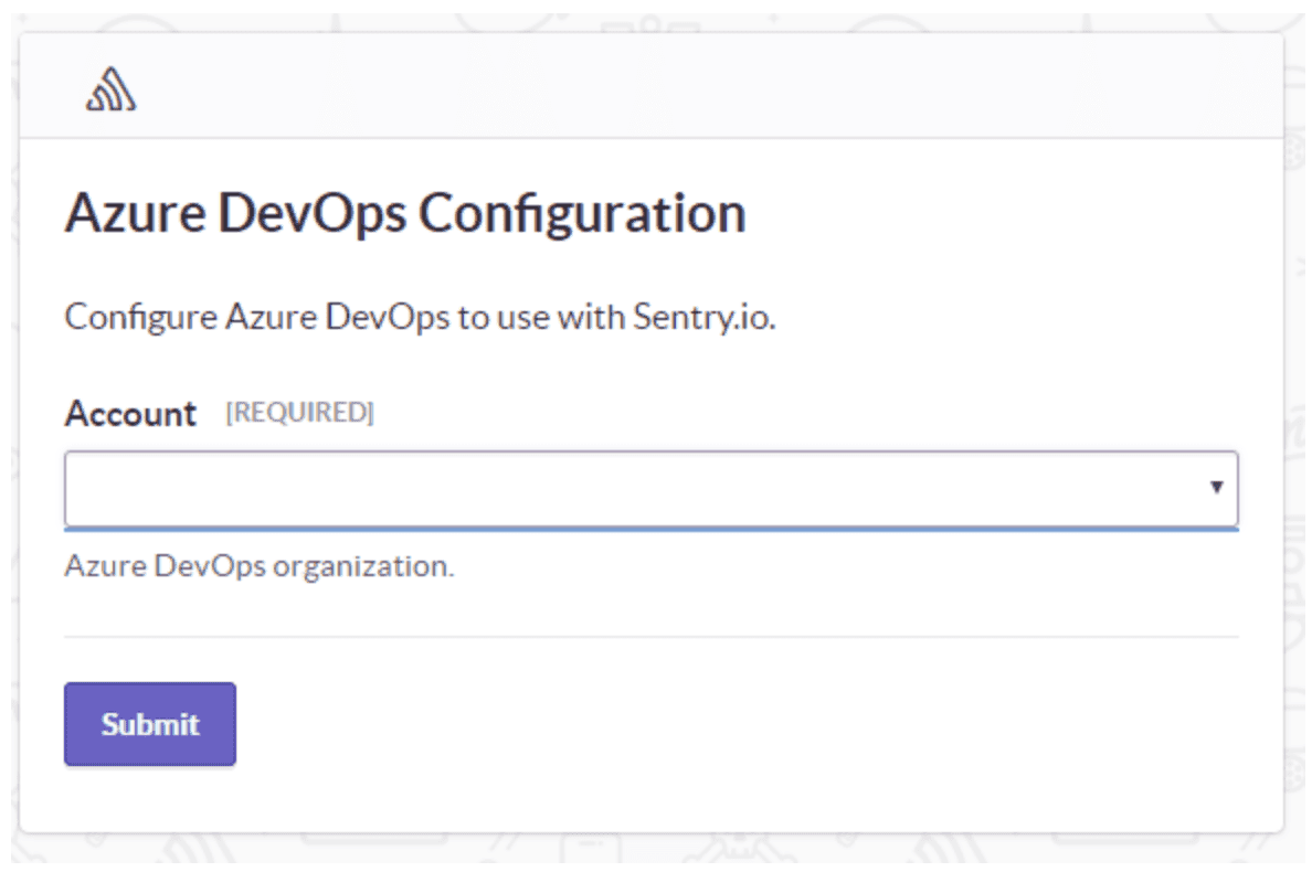 4. An Azure DevOps install window should pop up. Select the Azure DevOps account you'd like to link with Sentry, and press Submit.