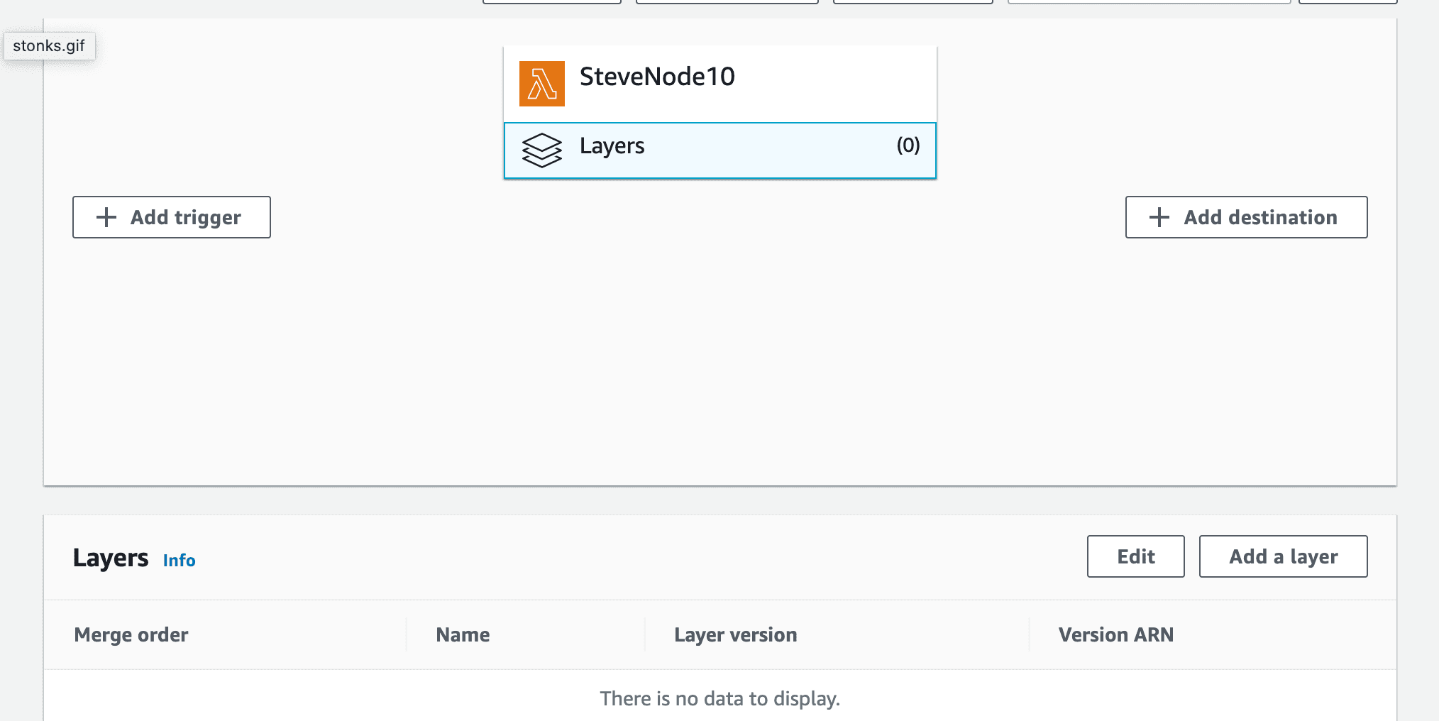 Add the Sentry Layer by navigating to your Lambda function. Select Layers, then Add a Layer.