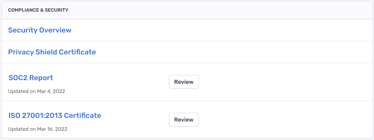 You can find a copy of Sentry's latest SOC2 report and ISO 27001 certificate by visiting Your Organization's Settings > Legal & Compliance. You will need either the Owner or Billing role assigned to your account in order to view this report and certificate.
